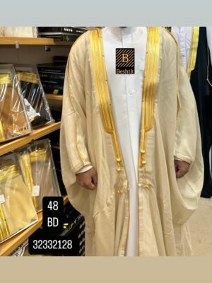 البشت الملكي البيج ذو الجودة العالية، من الزري الأصلي، والقماش الكوري البارد الناعم، شغل سعودي حساوي فاخر، نقدم لك ضمان المصنع على الزري 5 سنوات، يتميز بجودته وسعره المناسب للجميع، من أكثر البشوت مبيعا، مناسب لبسه طوال العام.