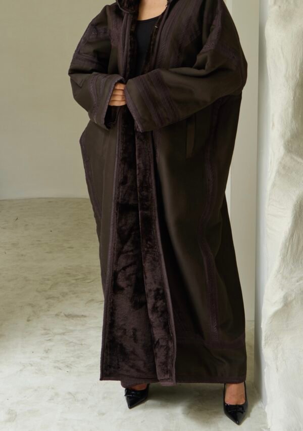 مبطّنة من الداخل بـ فرو ناعم يمنحك راحة استثنائية، ومزوّدة بقبعة وجيب لتضيف لمظهرك شكلاً عمليًا ومميزًا.